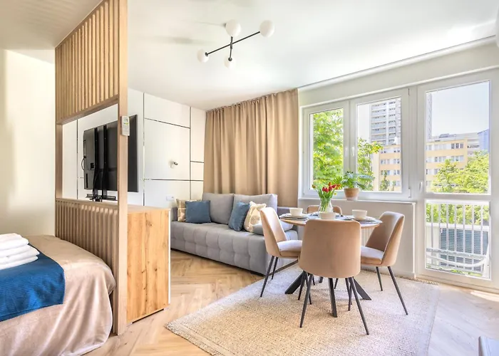 Tra i servizi di self-catering offerti c'è una cucina completamente attrezzata con un microonde, un bollitore elettrico e un frigo. Quest'appartamento si trova a circa 5 minuti a piedi dal ristorante la Crema Caffe, che offre cucina europea. L'aeroporto più vicino è di Varsavia Fryderyk Chopin, a 10 km dall'alloggio.